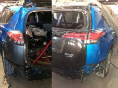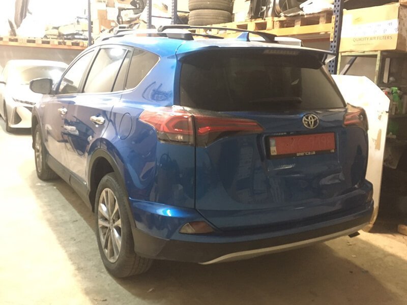 Ця Toyota RAV4 Limited Hybrid була придбана у штаті Каліфорнія, США, з незначним пошкодженням задньої лівої частини. На момент покупки автомобіль був на ходу та з цілою системою безпеки. Після доставки до Львова було замінено заднє ліве крило, відновлено внутрішню частину кузова, замінено кришку багажника та задній бампер.